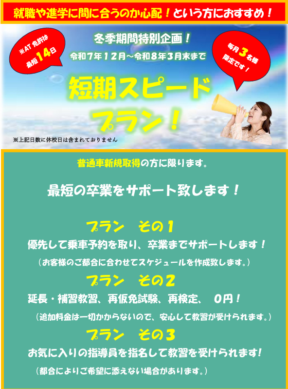 普通車限定冬季スピードプラン開催!